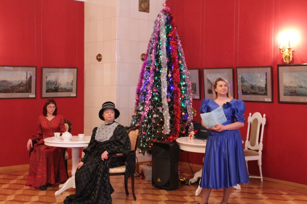 Красивый зал XIX века, рояль, свечи, рождественская ёль. Хозяйка старинного имения встречает гостей. Заинтригованы? Тогда мы ждём вас на нашей программе. Театрализованная постановка, передача, фанты, буриме, шарады… Вас ждут игры, весёлое настроение и, конечно же, сюрпризы.