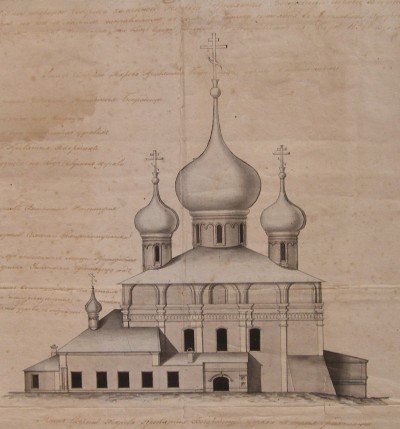 9 января 1845 г. утвержден проект нового иконостаса для соседнего придела Преподобного Паисия Угличского. Судя по сохранившемуся чертежу, он был выполнен в эклектичном стиле, – сохраняя классицистическую основу с коринфскими колоннами, овальными медальонами, резным декором, иконостас имел тройное килевидное завершение с фигурками херувимов (39).