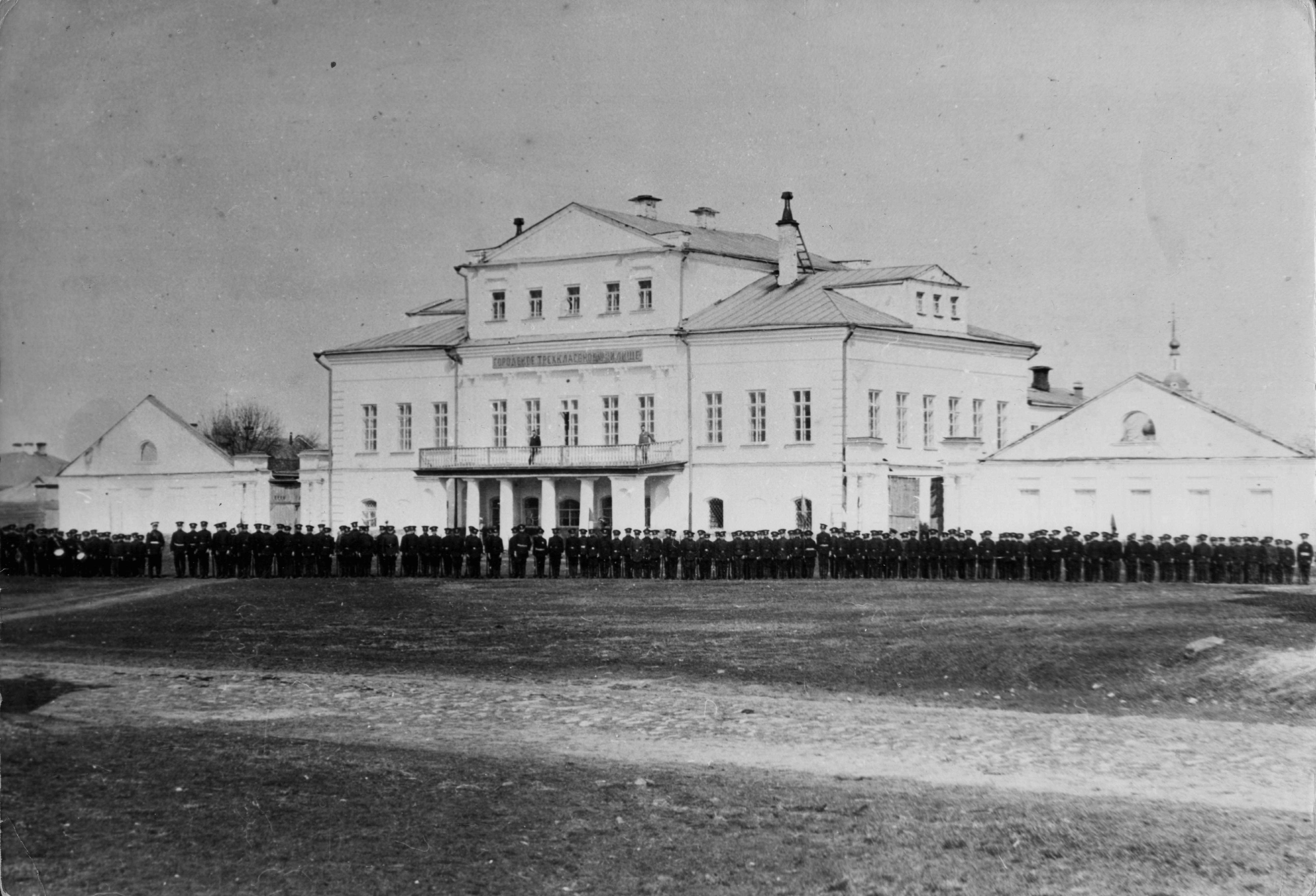 Следующий поворот в истории имения произошел в 1876 г. 21 марта следующий владелец потомственный почетный гражданин Илья Иванович Зимин продал каменный дом с надворными строениями и землей городскому обществу за 7750 рублей. Покупка была произведена с целью размещения в обширном здании уездного училища, которое становилось возможным преобразовать в городское трехклассное (30). Учебное заведение было размещено в бывшей купеческой усадьбе после проведения необходимых перестроек.