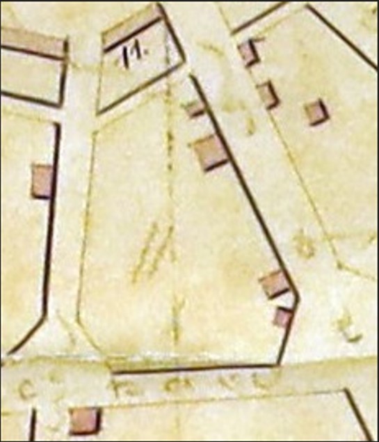 Восточнее дома № 16 находился перекресток Солодняной и Панской улиц – поворот к Васильевскому крестцу. В XVIII веке примерно в районе будущего регулярного имения проживали посадские Толстиковы, двор которых относился к Солодяной улице. Конечно, в тех местах находились и другие соседние дворы. Такой была прежняя топография территория, – где в соответствии с регулярным планом образована треугольная площадь, а в середине XIX века вознесся величественный Богоявленский собор, и в древности также располагался один из важнейших узловых перекрестков.