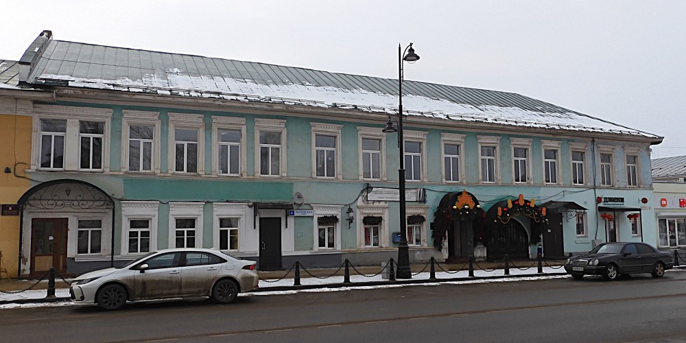 По правой стороне улицы расположено протяженное двухэтажное здание, в котором на памяти угличан практически всегда размещались различные учреждения (ул. Ростовская, № 6). В наше время можно назвать административные муниципальные службы, Туристско-информационный центр, Общественно-патриотическое пространство, салоны сотовой связи, аптеку, ресторан азиатской кухни «Джеки»… Пожилые угличане вспомнят «Дом крестьянина», «Чайную», магазин «Природа», тир, пекарню и немало других знаковых заведений. Не так давно там еще располагались парикмахерская и фотоателье, торговый центр «Ростовский пассаж». При этом на фоне многочисленных заведений, как правило, теряется само здание, а, между тем, оно имеет насыщенную, без малого двухсотлетнюю историю, которую и рассмотрим в данной публикации.