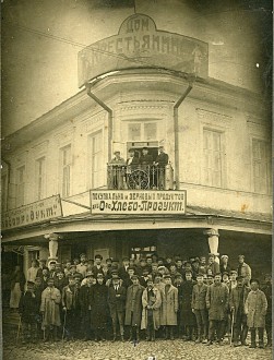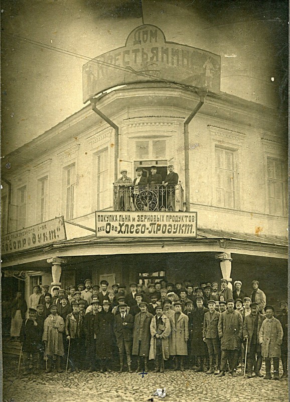 Таким купеческое имение было в предреволюционный период. Примечательно, что с наступлением советской власти в его использовании мало что изменилось. После муниципализации здание переходит в ведение Горкомхоза. В 1923 году там был открыт Дом крестьянина, который позднее также именовался Домом колхозника – своеобразная разновидность советской гостиницы или постоялого двора для приезжавших в город сельских жителей. Над закругленным углом в 1920-х годах красовалась стильная живописная вывеска «Дом крестьянина», выполненная в духе наглядной агитации той поры, а вместе с тем очень похожая и на традиционную купеческую рекламу. На крыше галереи были закреплены другие вывески с надписями «Покупка льна и зерновых продуктов/ акционерное Общество Хлебо-Продукт». В данном отношении также продолжалась специфика деятельности купцов Пивоваровых.