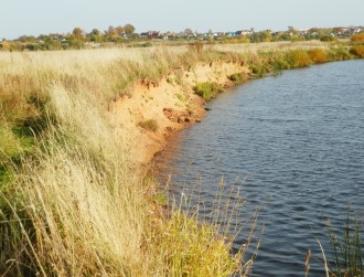Если проходить по Набережной Красноармейского бульвара – старинной Рыбной слободы, а далее по извилистым тропинкам к Золоторучью, то на противоположной стороне Волги можно видеть протянувшуюся вдоль берега узкую равнину. Как и на правой стороне, она пересечена береговыми всхолмлениями и оврагами, а ближе к устью Корожечны переходит в пологую низину. Левобережье открывает дальние величественные виды, простирающиеся на несколько километров, но ширь пейзажей имеет естественные границы в виде Красной горы и Алтыновского яра. Разновысотный гребень холмов с дальней стеной леса и змеящимся серпантином дорог создаёт необычайно эффектные виды – редкие для наших умеренных спокойных пейзажей.