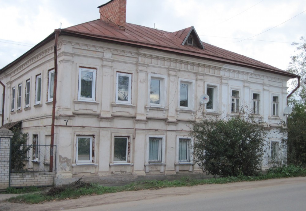 Проходя по улице Октябрьской, далеко не каждый обратит внимание на старинный особняк (дом № 7), а, между тем, подлинная пластика его фасада достойна большого внимания! Провинциальный ранний классицизм, в местных реалиях характерный для архитектуры Углича 1790-1800-х годов, здесь представлен во всём блеске. Это одно из последних и лучших зданий Углича, сохранивших характерные особенности, – из когда-то многочисленной группы городских домов.